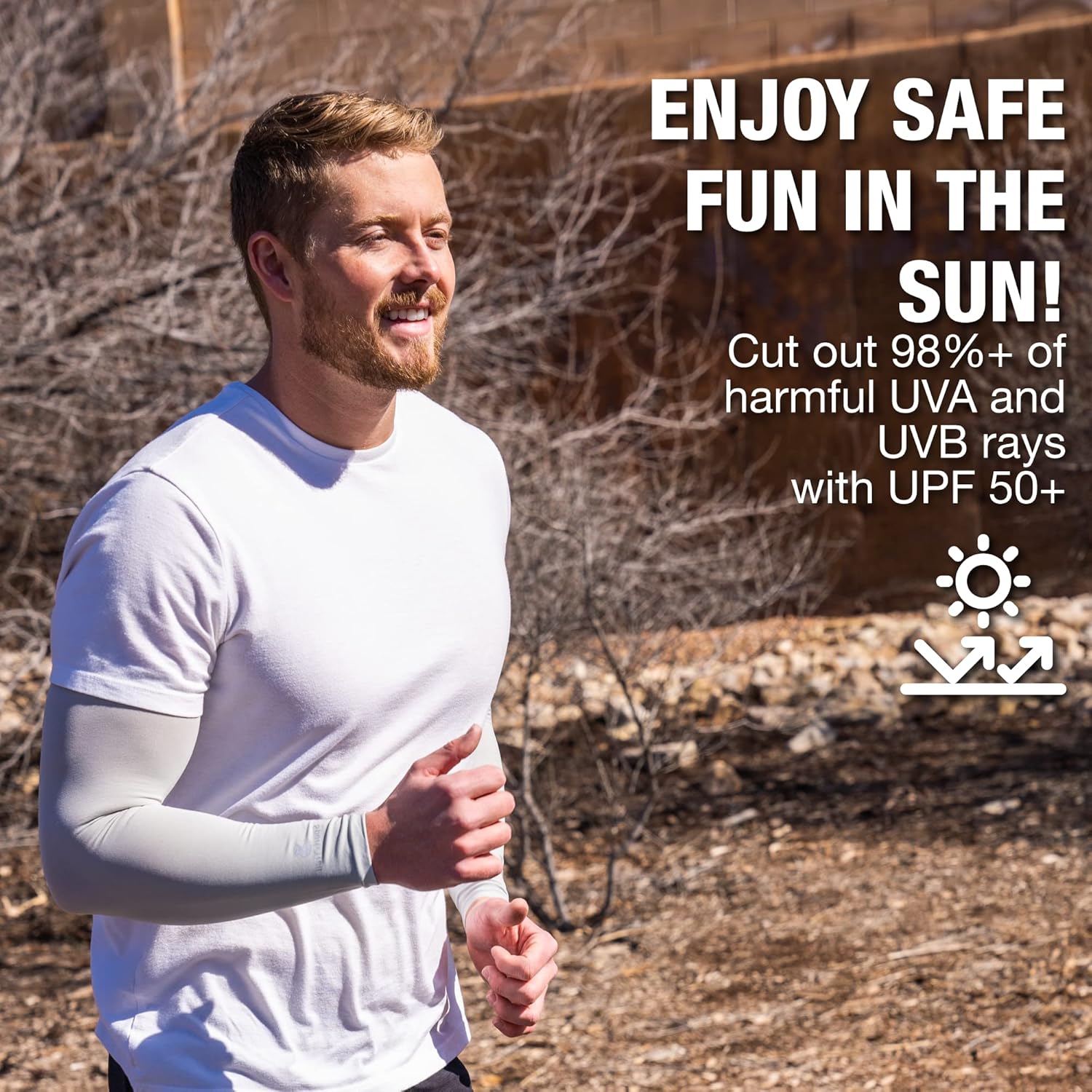 - Superior UPF 50+ premium arm sleeves – our innovative UV sleeves for men and women block over 98% of the sun’s harmful UVA and UVB rays, offering full UPF 50+ coverage. These sun sleeves for men and women are ideal for shielding yourself from the sun on hot days – whether you’re playing golf, basketball, baseball, volleyball, running, or cycling.