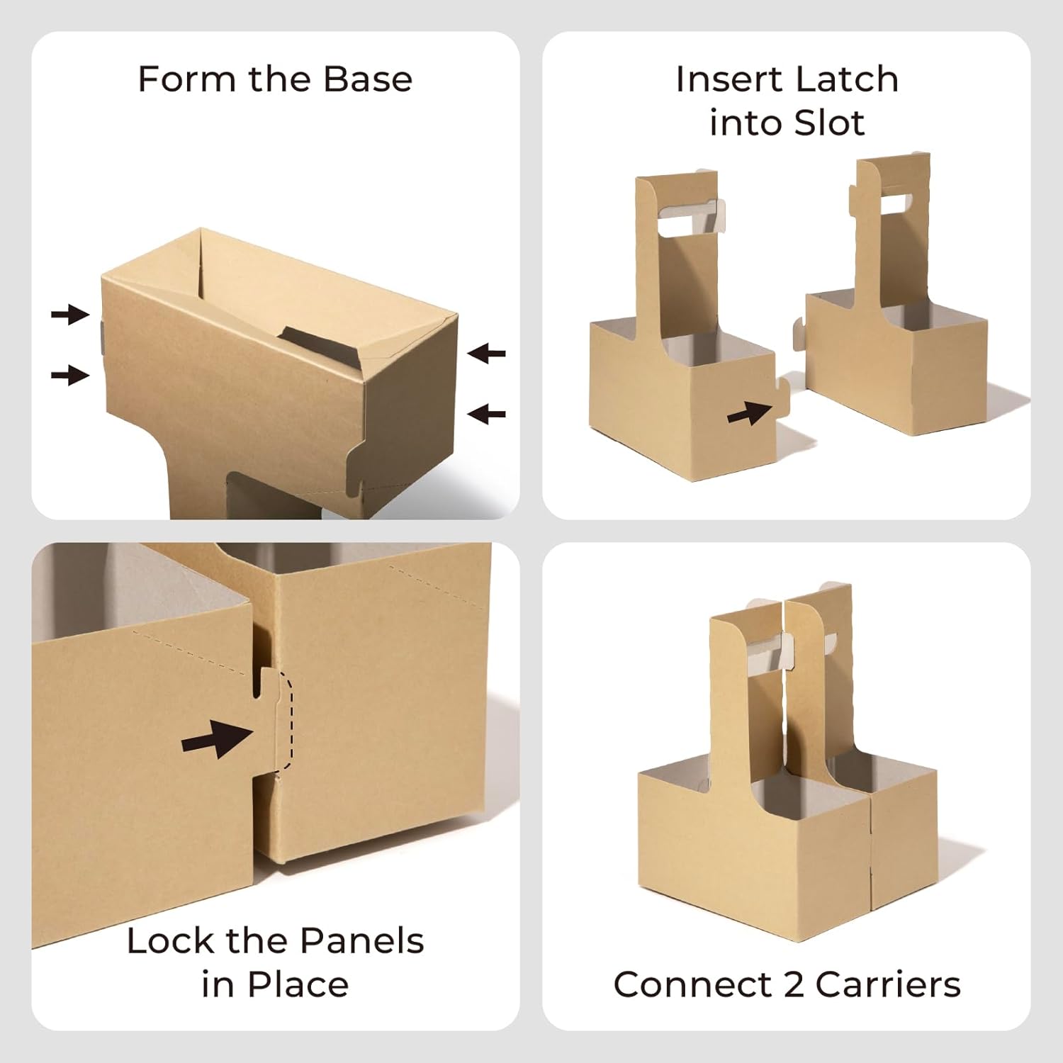 - Durable Material: Made from 100% recycled, moisture-resistant kraft paper cardboard, our drink carrier supports sustainable practices without compromising on quality. It offers excellent stability and balance, protecting against leaks and messes, and is perfect for both hot and cold beverages.