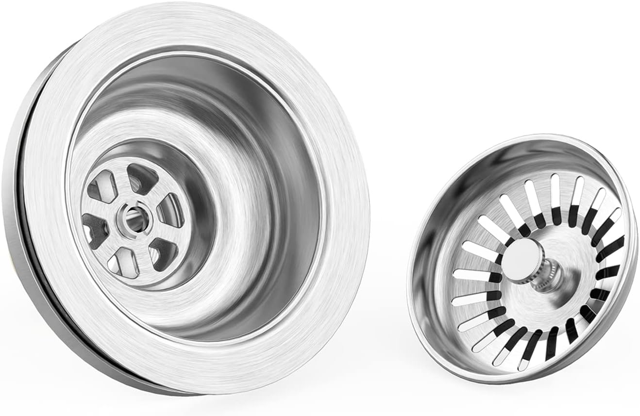 KONE Sink Drain Assembly, Kitchen Sink Drain Strainer Kit with Removable Strainer Basket Stopper, Universal fit USA Home/Commercial 3-1/2 Inch Standard Sink Drain Hole (Stainless Steel)