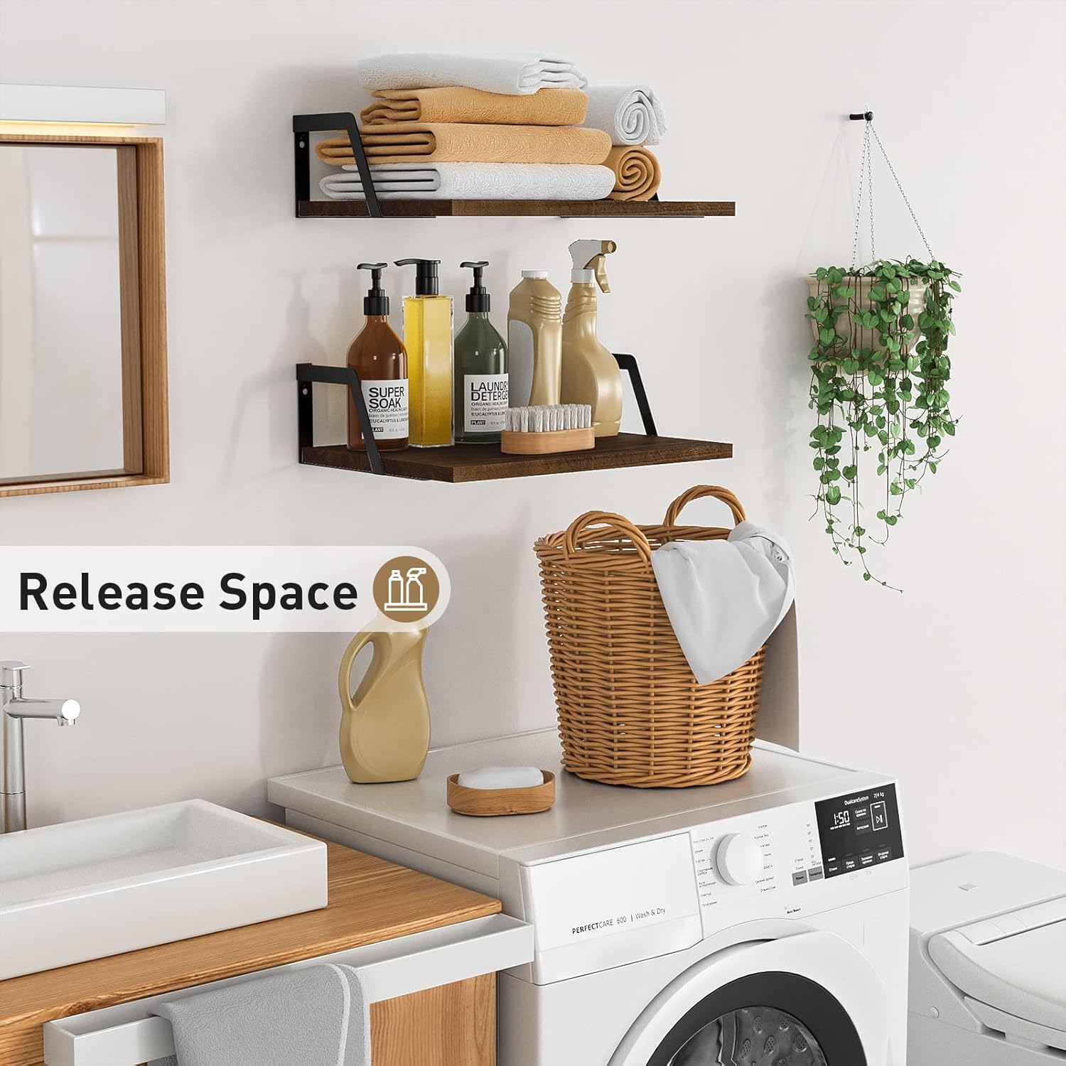 - Decorative Floating Shelves: The 2-set wall shelves will brighten up your home decor thanks to the black wood and and industrial metal brackets.
