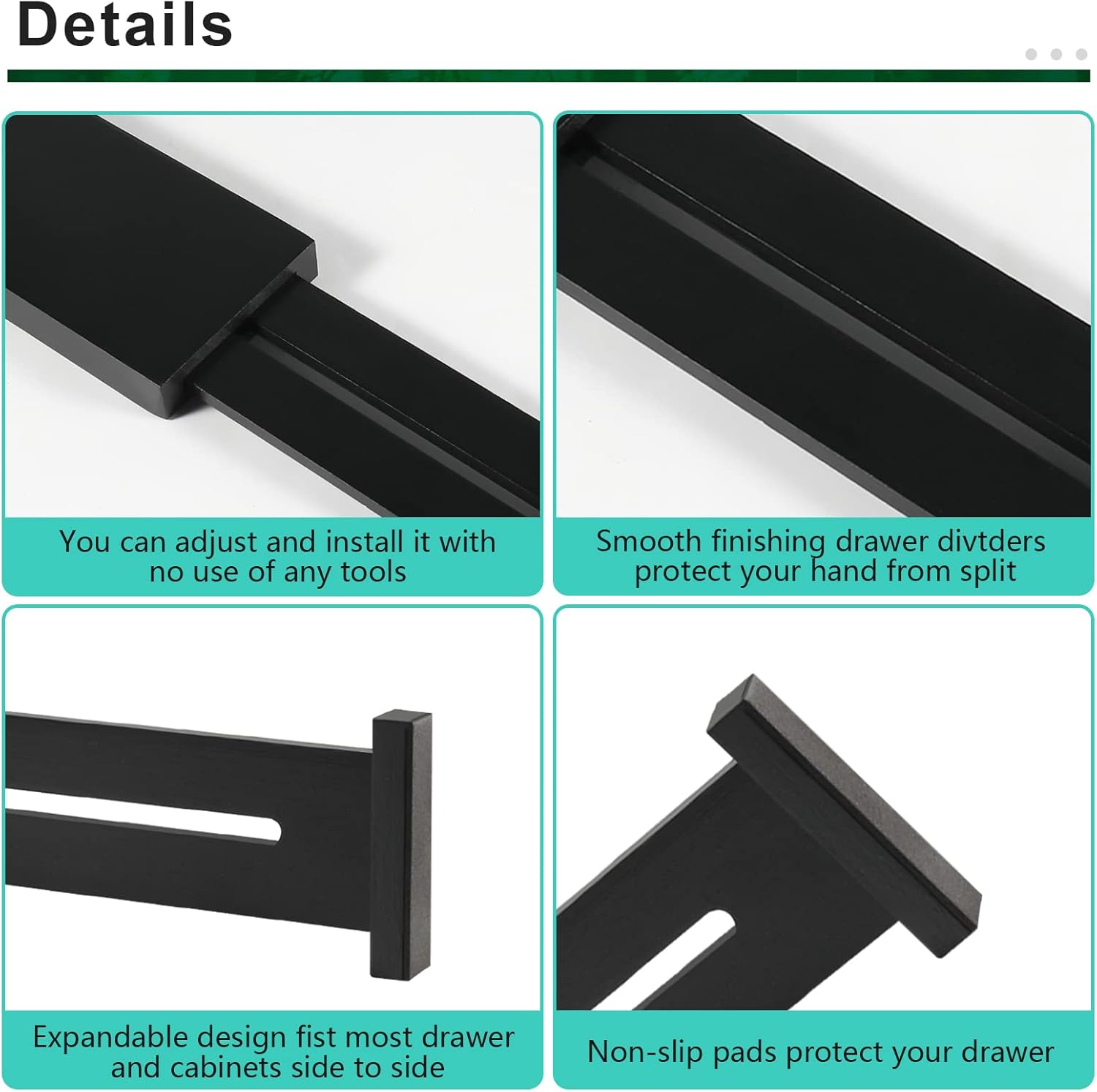 - Adjustable Drawer Dividers: Adjustable drawer dividers range from 11.8-17 inches in length; fits easily in most drawers to keep your belongings organized and easy to access