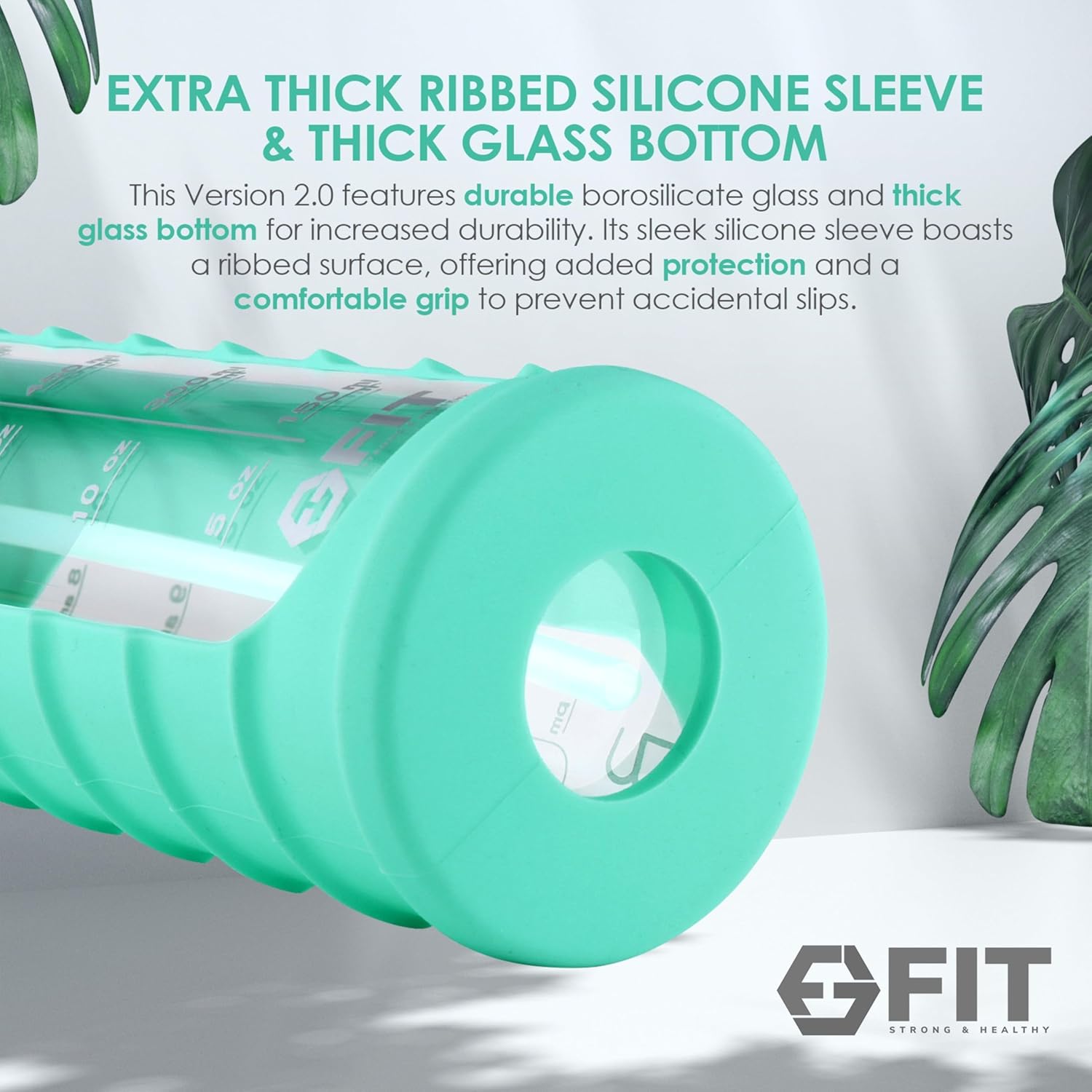 - Patented Design: We listened and worked hard on making this version the best glass water bottle; this version 2.0 is made of strong borosilicate glass and offers a thick glass bottom for added durability; the new stylish extra-thick silicone sleeve features ribbed sides for added protection and an extra comfortable, non-slip grip; our glass water bottles are leakproof, reusable, and an excellent gift for wellness-oriented individuals and fitness enthusiasts of all genders