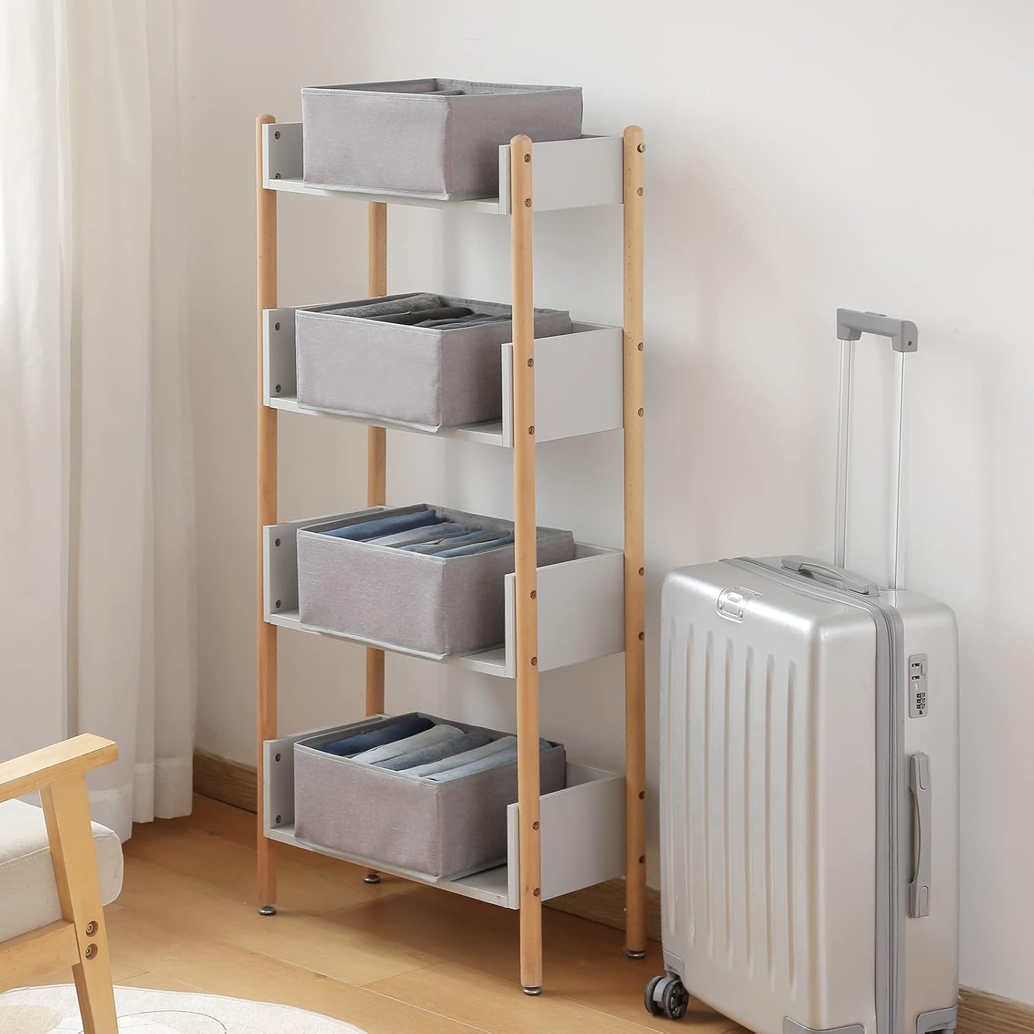 - 5 GRIDS JEANS ORGANIZED: This jeans storage has five compartments with a width of 2.52 inches, which can store your jeans, pants, leggings, T-shirts, dresses, towels, etc. The 5 grids can be used to store your clothes from Monday to Friday, making everything organized.