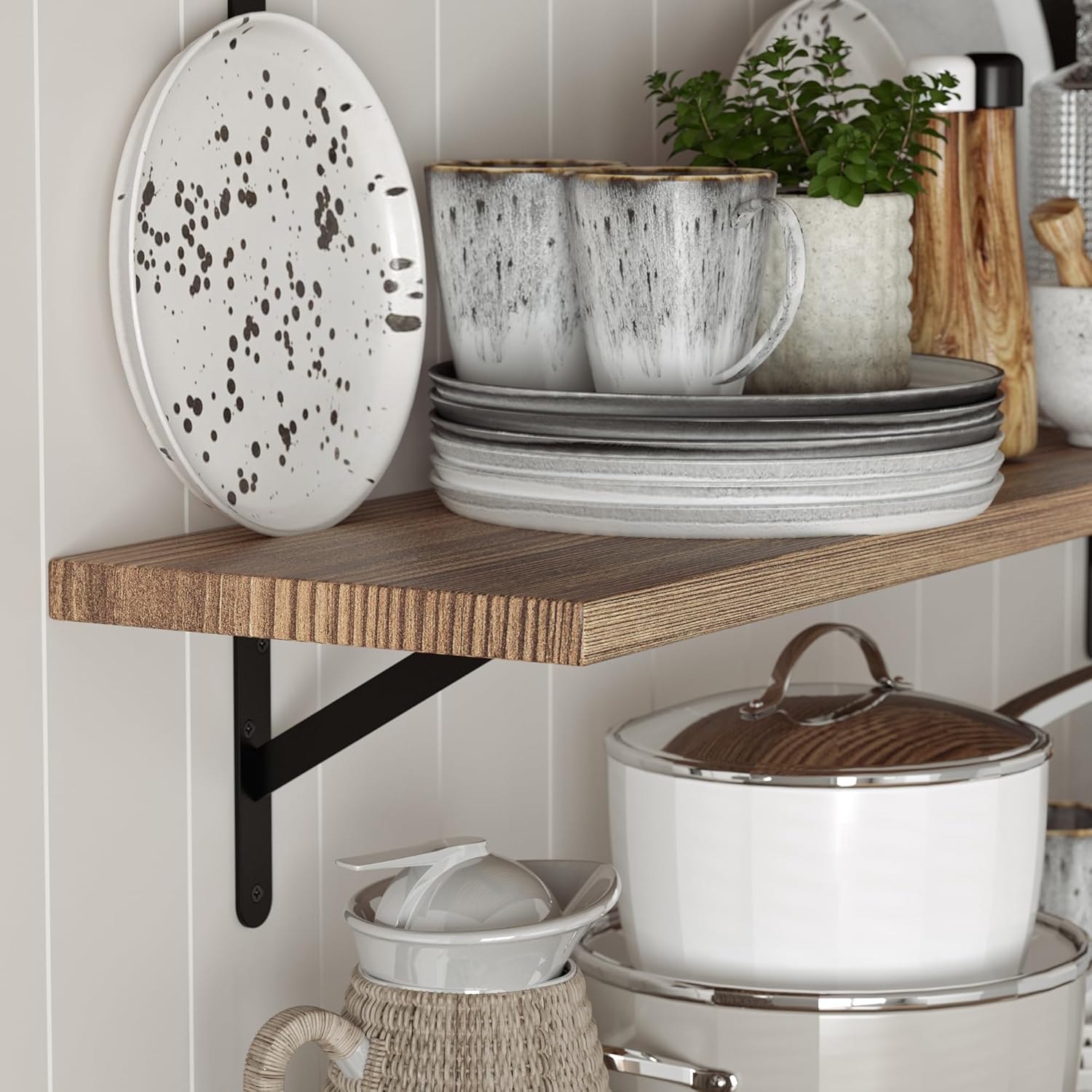 Wallniture Forme 48 inch Long x 10 in Deep Rustic Floating Shelves for Wall Storage, Wall Bookshelf for Living Room Decor, Kitchen, Office Floating Shelf, Set of 3, Burnt, Wood