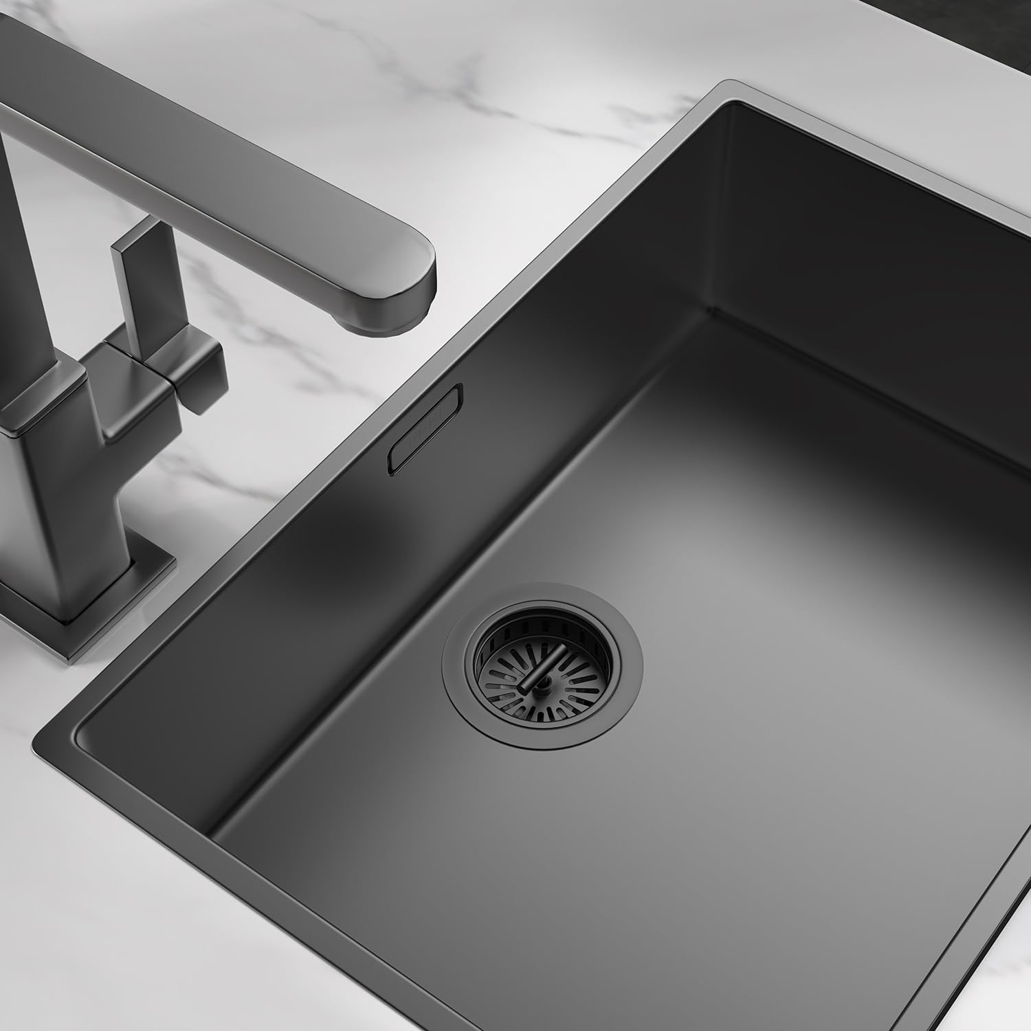 KONE Kitchen Sink Stopper Strainer Replacement for Standard 3-1/2 Inch Spin and Seal Drains with Threaded Stopper Function, Stainless Steel Sink Strainer, Black Twist Lock Basket Strainer Replacement
