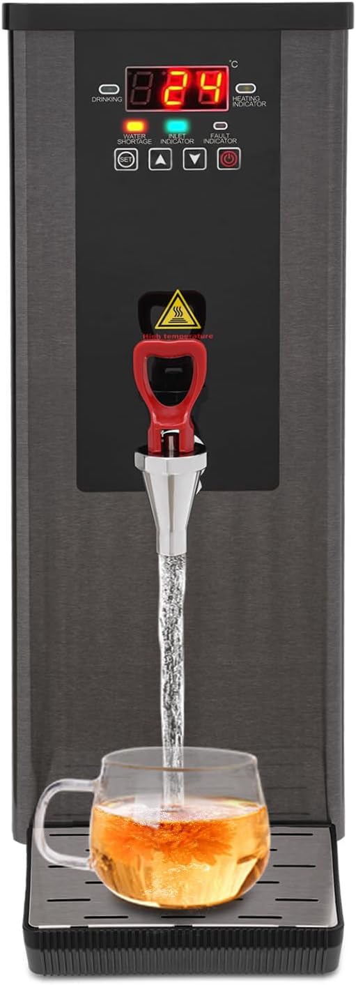 - ăEasy to Use & Good Materială: The smart digital display screen shows you the temperature in real-time and lets you see all the functions at a glance. The sensitive keys allow you to adjust easily. You can also set on and off times for your convenience.This commercial water boiling machine and dispenser mainly uses 304 stainless steel for the material, with high hardness, good performance of corrosion and rust resistance, making you drink it with peace of mind.