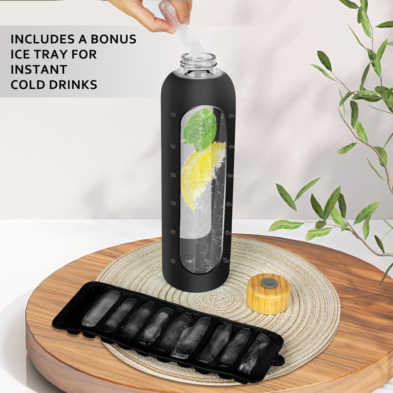 - TRACK DAILY HYDRATION GOALS: Stay on top of your water intake with this glass water bottle with time marker, featuring clear volume indicators. Whether you're at work or exercising, it’s a simple, effective tool to meet your health and hydration goals.
