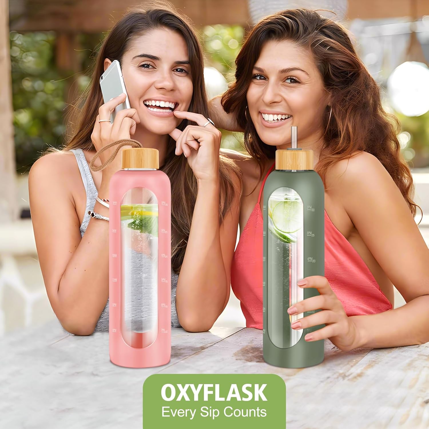 - TRACK DAILY HYDRATION GOALS: Stay on top of your water intake with this glass water bottle with time marker, featuring clear volume indicators. Whether you're at work or exercising, it’s a simple, effective tool to meet your health and hydration goals.