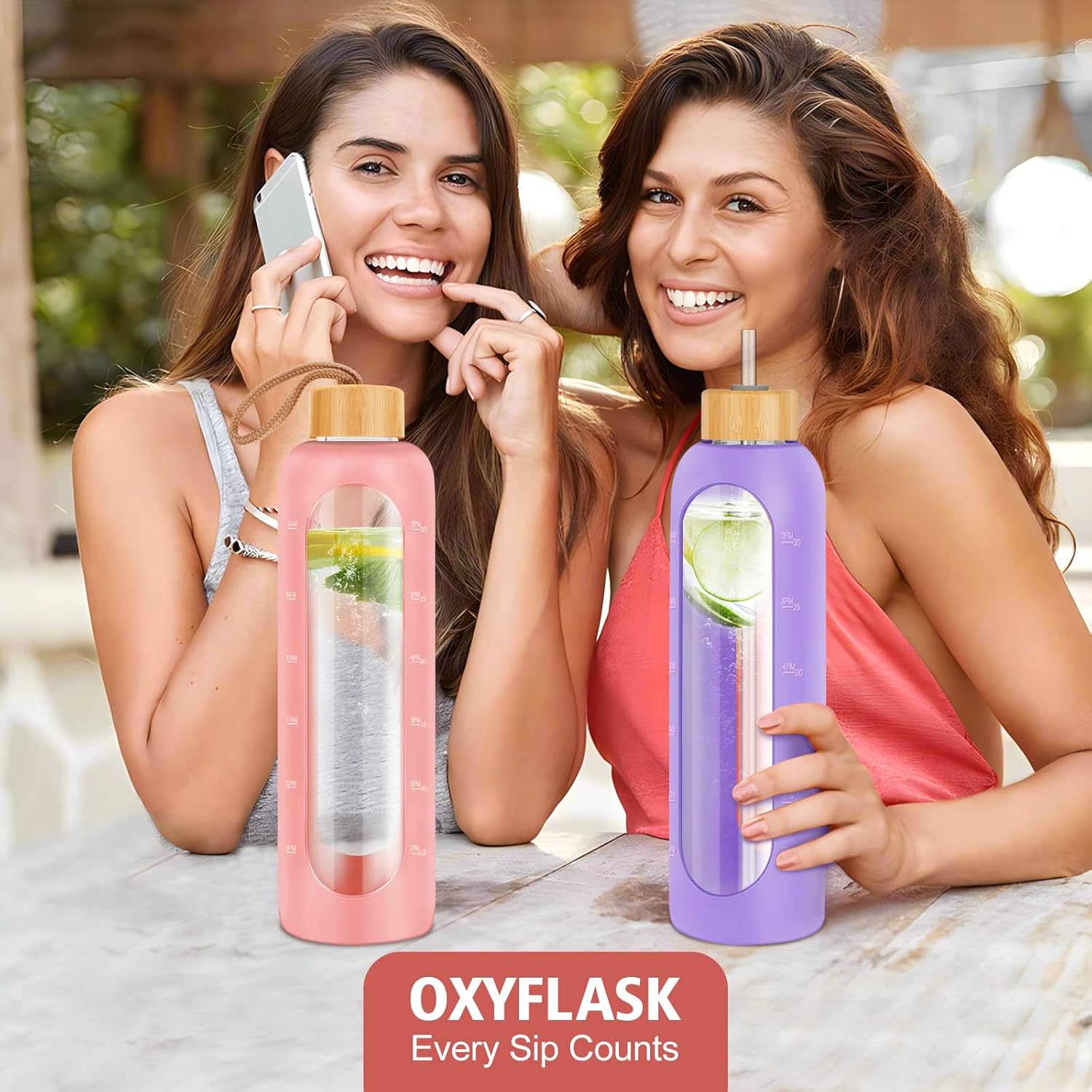 - TRACK DAILY HYDRATION GOALS: Stay on top of your water intake with this glass water bottle with time marker, featuring clear volume indicators. Whether you're at work or exercising, it’s a simple, effective tool to meet your health and hydration goals.