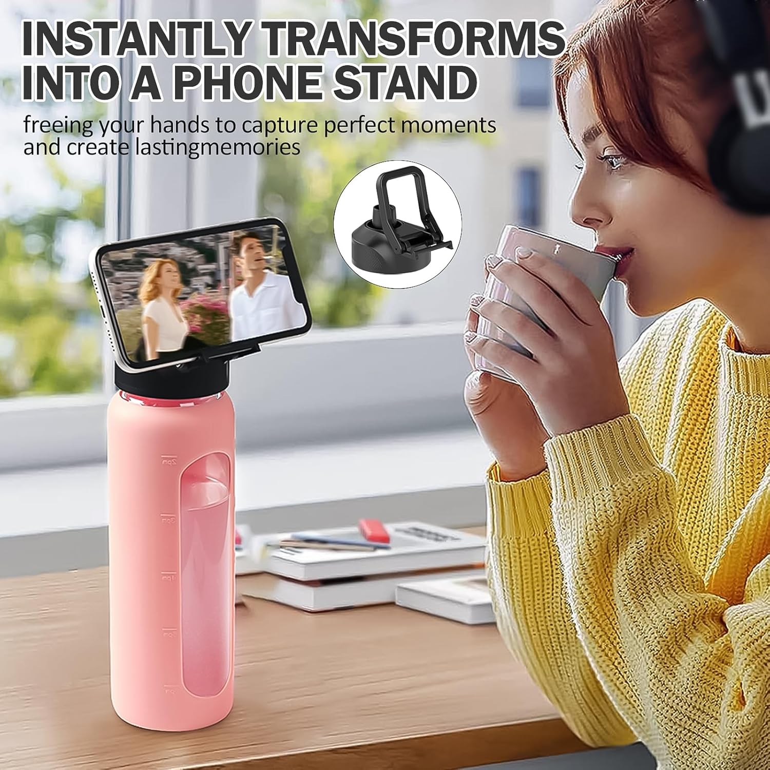 - PHONE STAND & CUP HOLDER FRIENDLY- Choosing the NOLOGLAZIC glass water bottles 32 oz not only keeps you hydrated but also doubles as a convenient phone stand, freeing your hands for capturing perfect moments and other activities such as work and workouts. Moreover, it fits most car cup holders, making it the perfect companion for drivers.