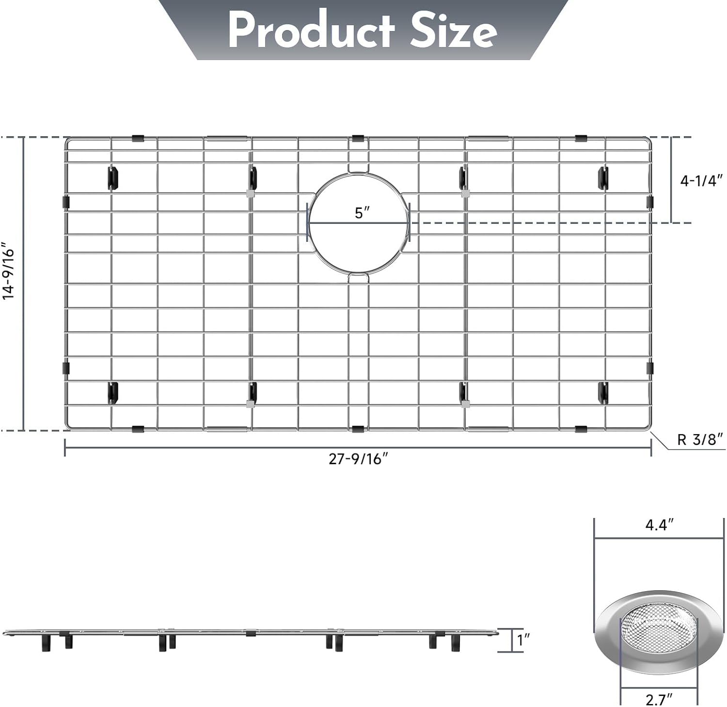 27-9/16" x 14-9/16" Stainless Steel Sink Protector, Sink Protectors for Kitchen Sink, Sink Grid, Sink Grate for Bottom with Rear Drain, Metal Sink Rack for Bottom of Sink with Corner Radius 3/16"