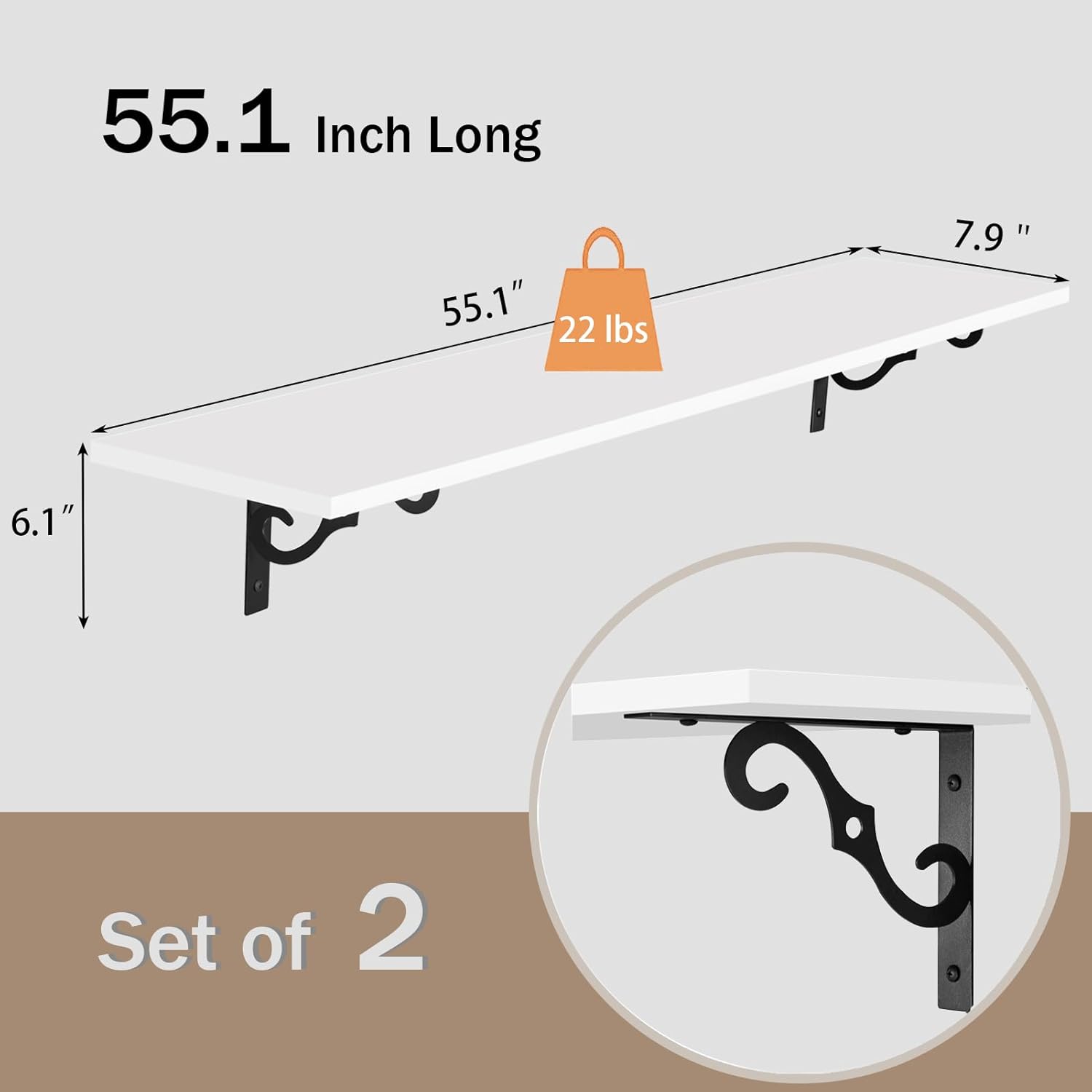 - ăWell MadeăMade of premium particleboard and intimate designed metal brackets, sturdy and durable. Thicker brackets bring added stability and stronger load-bearing capacity(up to 33lbs), supporting the wood shelves without sagging over time. All edges are well-finished for smoothness
