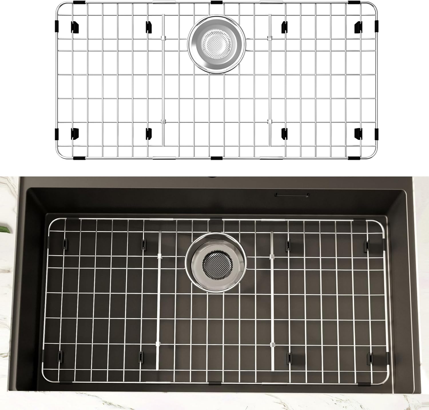 - Easy to Clean: Metal sink protectors for kitchen sink can be cleaned in the dishwasher or by hand. Simply rinse the rack with water and use it again. Great kitchen sink accessories! Note: The rubber mat must be removed before placing the grid in the dishwasher