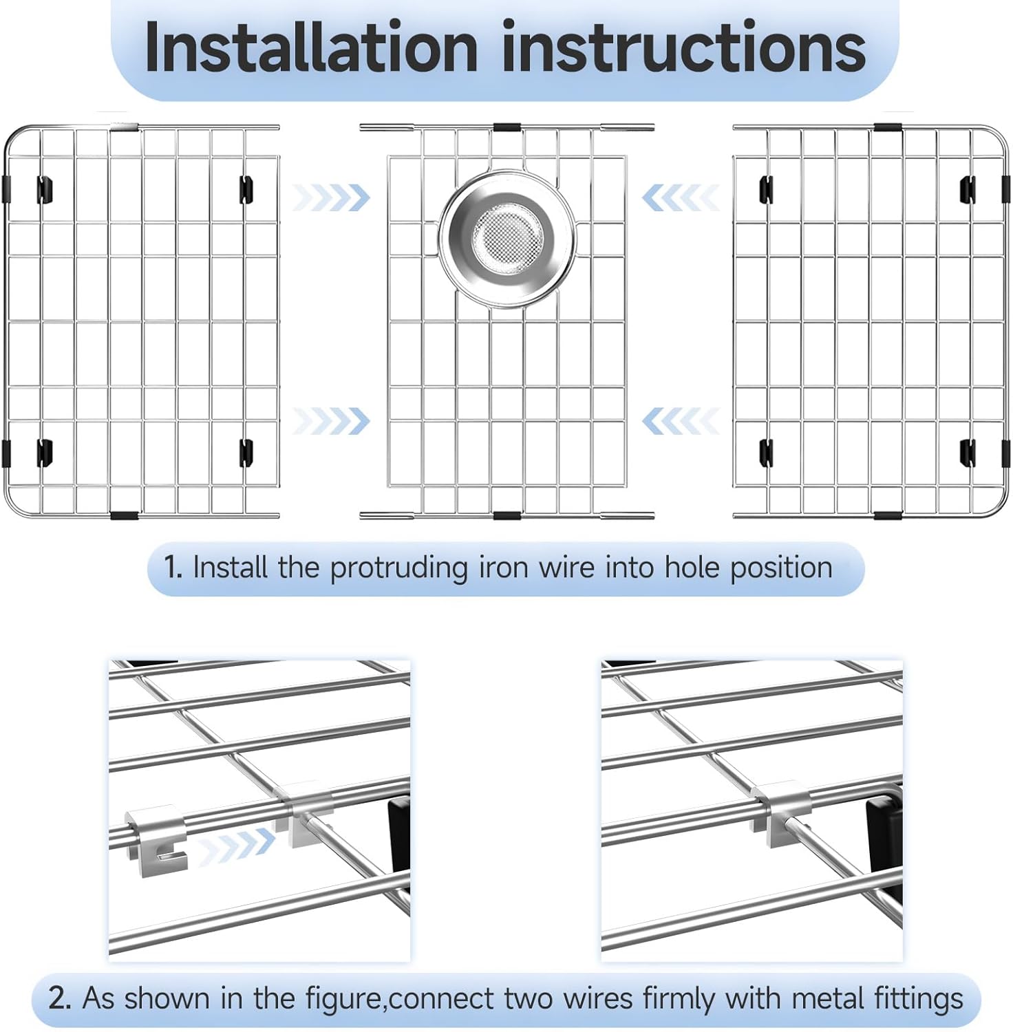 - Easy to Clean: Metal sink protectors for kitchen sink can be cleaned in the dishwasher or by hand. Simply rinse the rack with water and use it again. Great kitchen sink accessories! Note: The rubber mat must be removed before placing the grid in the dishwasher