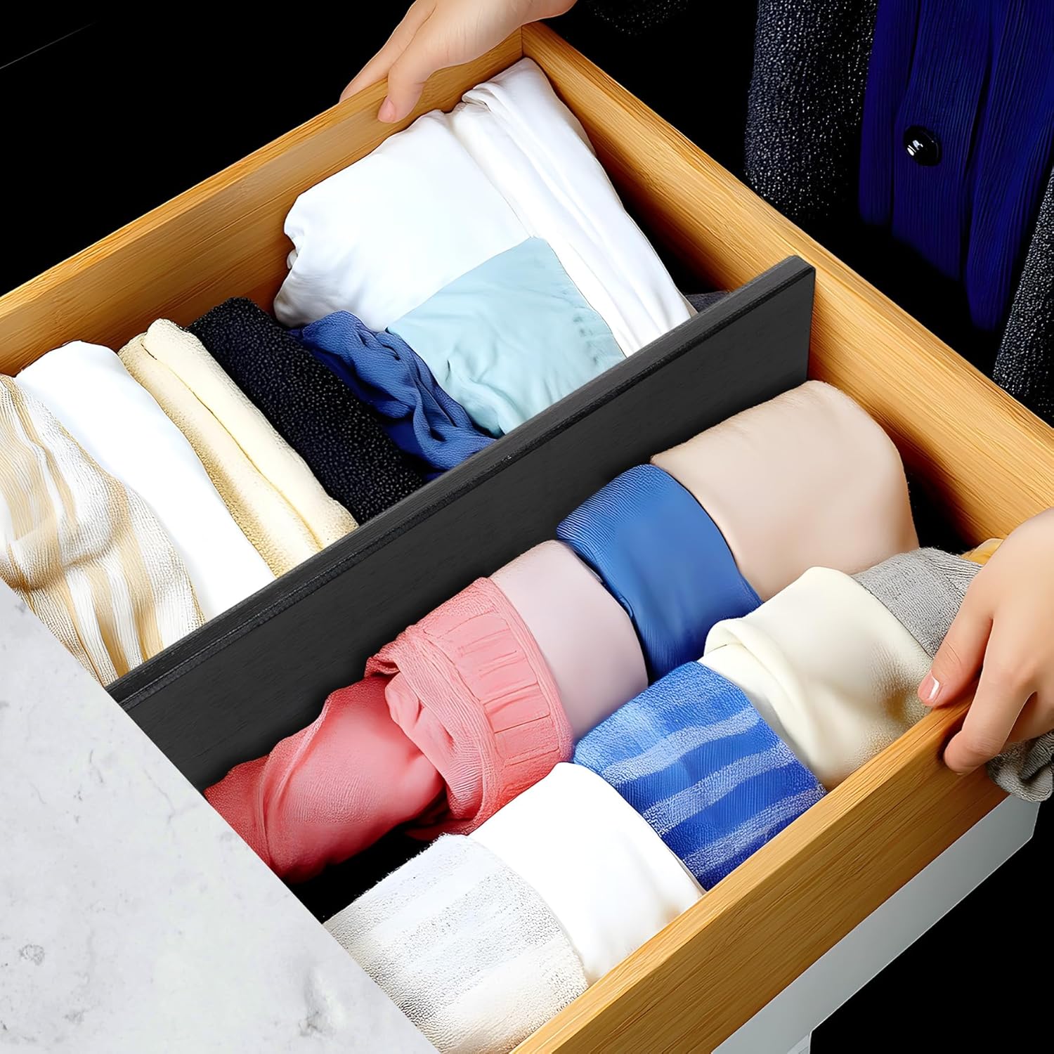 - Bamboo Material: Both ends of the divider are applied with non-slip pads to protect your drawer and also the organizer itself. Drawer dividers are made of organic moso bamboo, and are durable and beautiful
