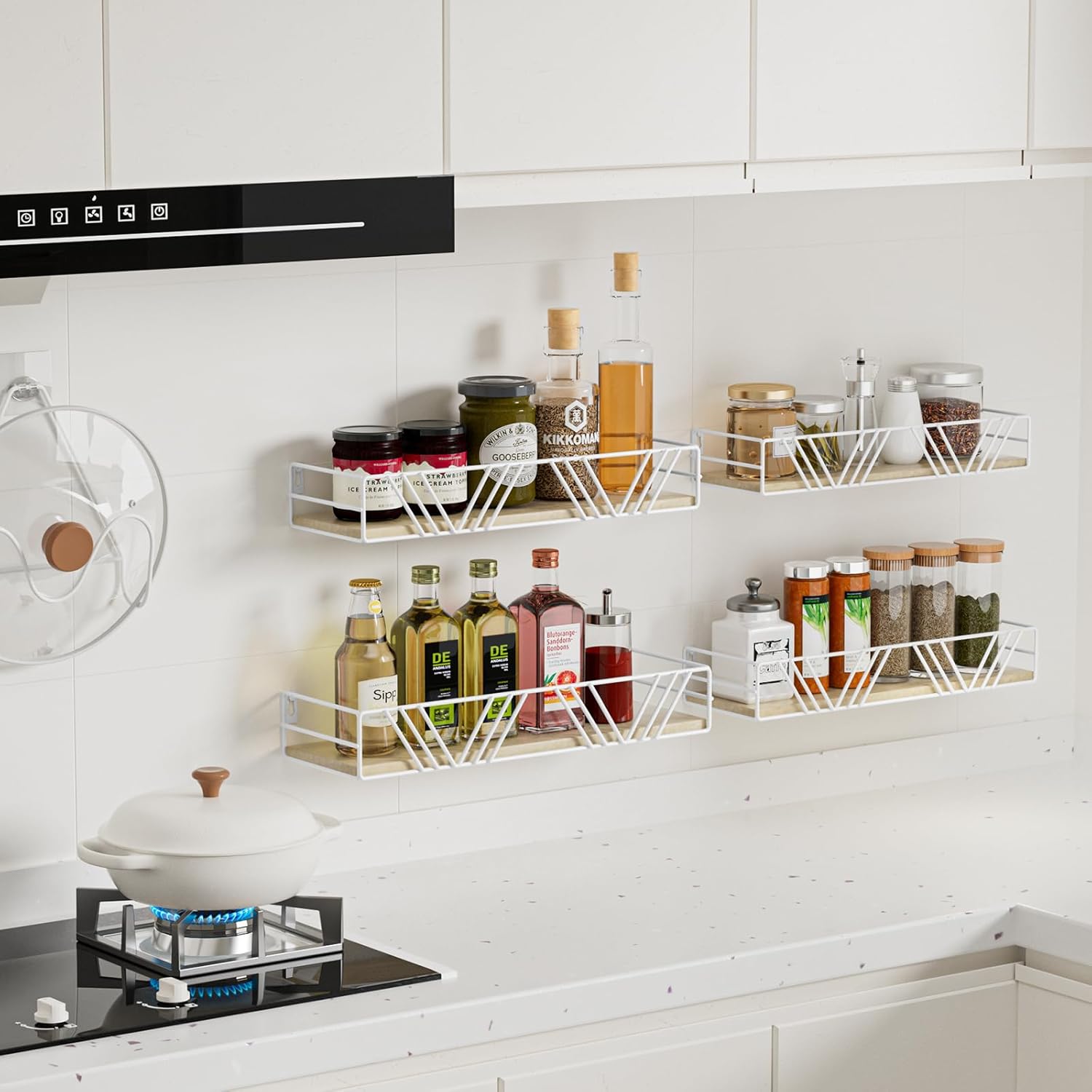 - Versatile Shelving: This wall shelf Use it anywhere! In the kitchen, it’s a spice rack; in the bathroom, it adds storage above the toilet for toiletries; in the living room, it becomes a display shelf for plants, trophies, collectibles, books, or photos. Adapts to any room’s needs!
