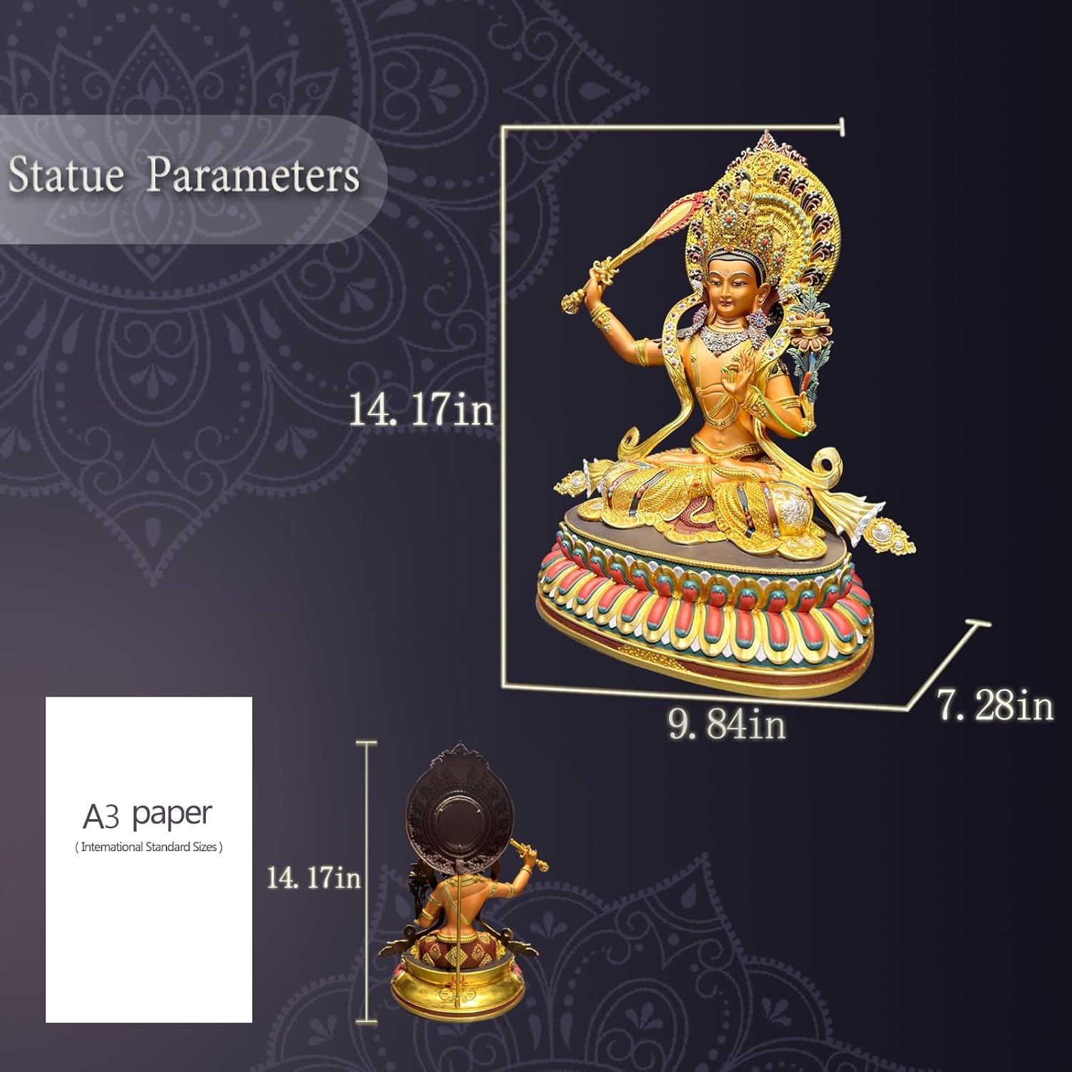Buddha Statue Indoor, Buda Sculpture for Home Decor, Hand-Painted Colored Buddhist Budda, Nepalese Craft Handmade Tibetan Buddhism Meditation Copper (Manjushri, 14.17")