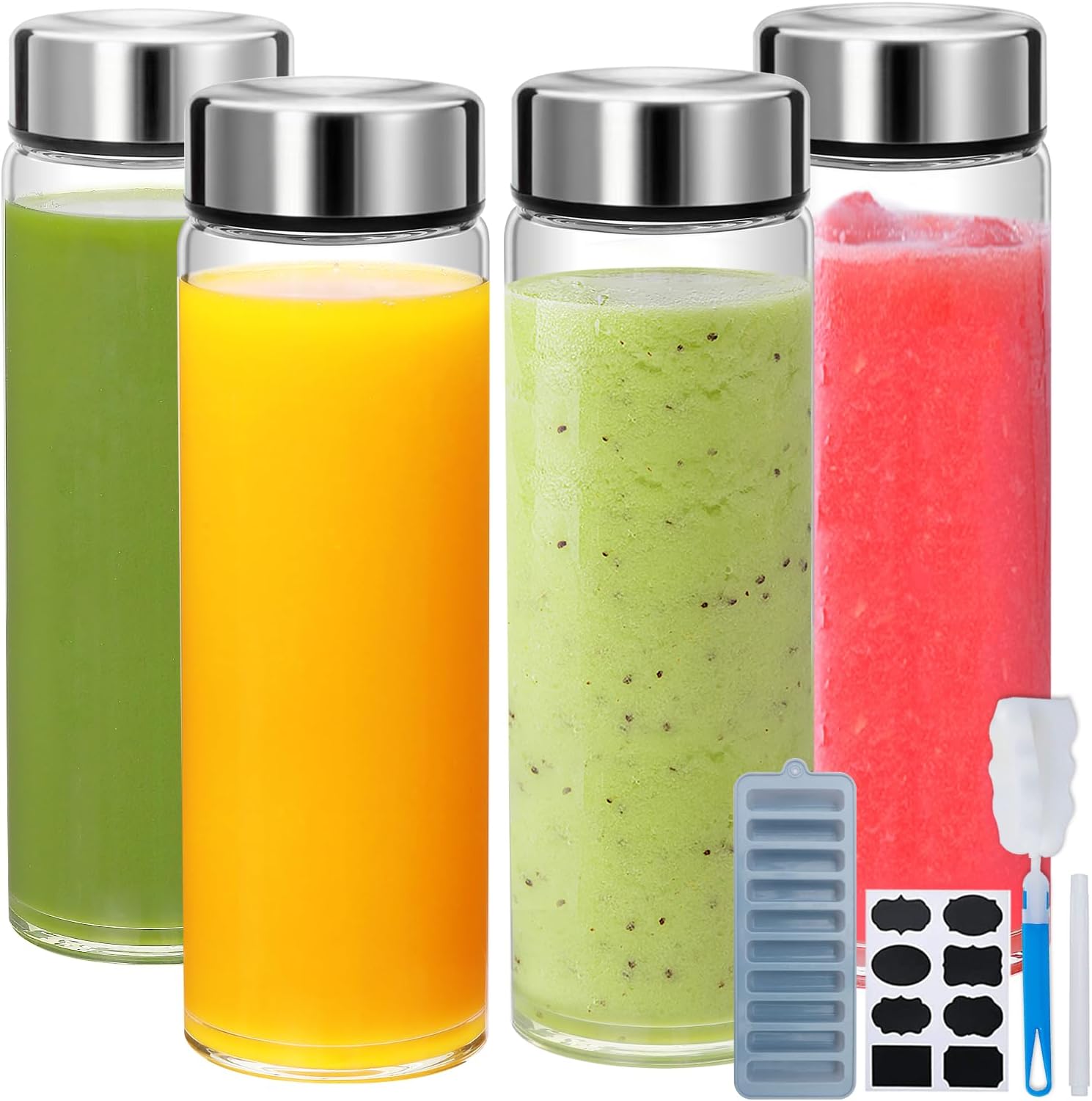 - Thoughtful & Practical Gift:Perfect gift set of glass bottles with lids. Ideal for juice lovers or anyone needing a great water bottle. Fits car cup holders!