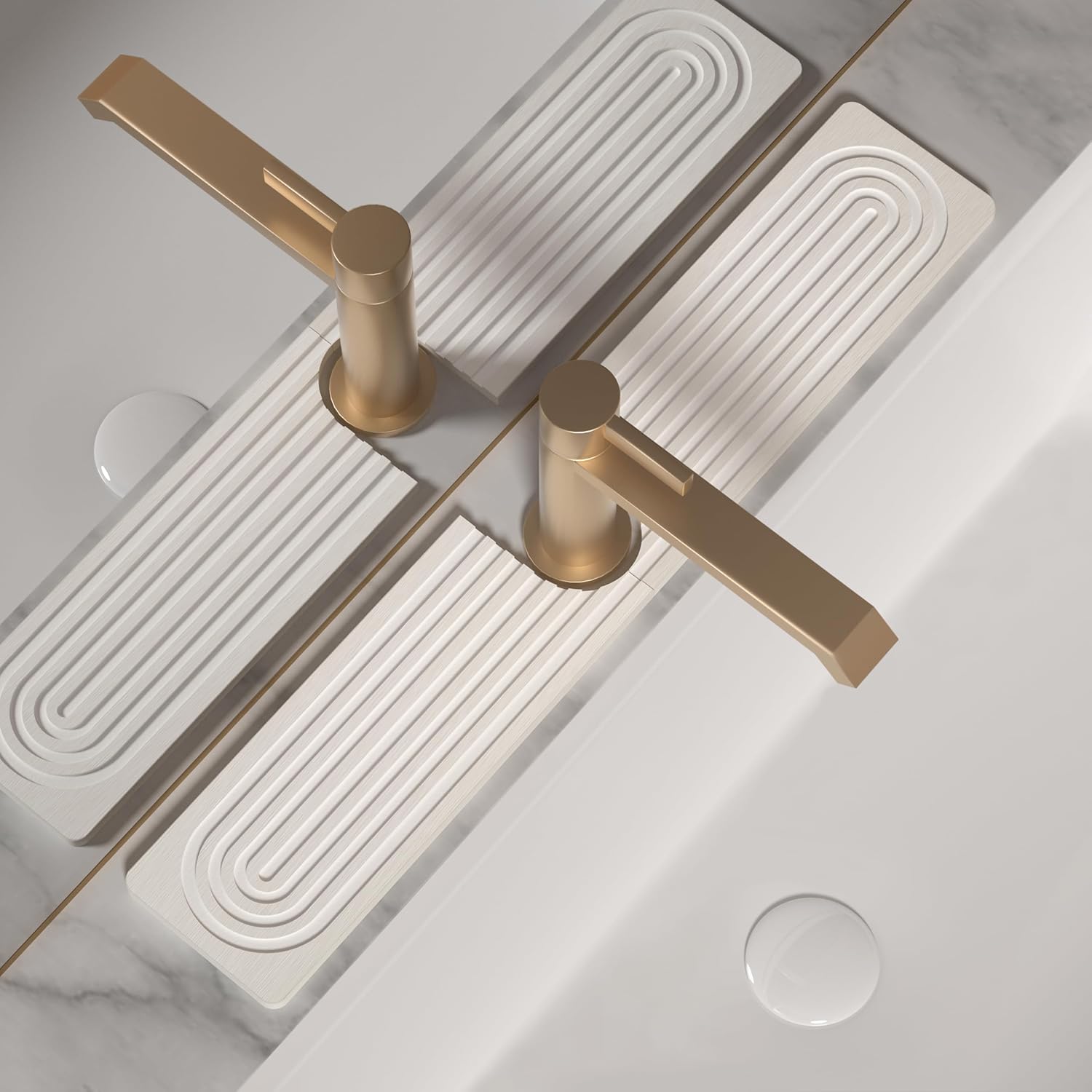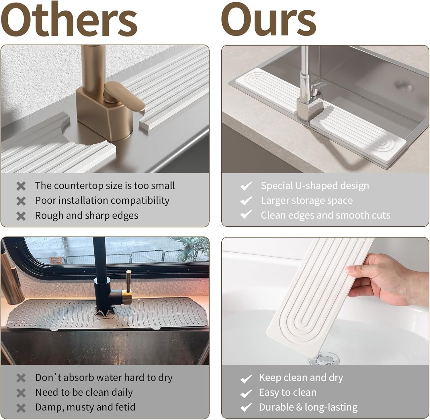 - ๐๐ข๐ง๐ค ๐๐๐ญ & ๐๐ซ๐ ๐๐ง๐ข๐ณ๐๐ซ: This mat serves a dual purpose in your sink area. In addition to effectively absorbing water around the faucet, it functions as a practical holder for soap, toothbrushes, cups, dish sponges, and other items that require drying, keeping your countertops clean and dry