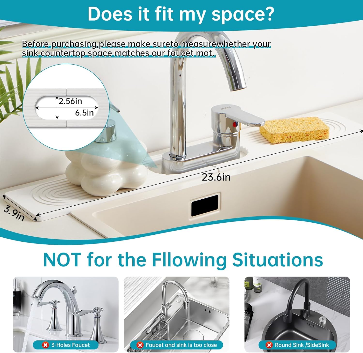 - Please Measure Before Purchasing – This mat measures 23.6" × 3.9" × 0.35" with an oval hole about 6.5" × 2.5". Make sure it fits your faucet base and does not cover any sink buttons or soap dispensers. If your faucet area is smaller than these dimensions, this mat may not be suitable.