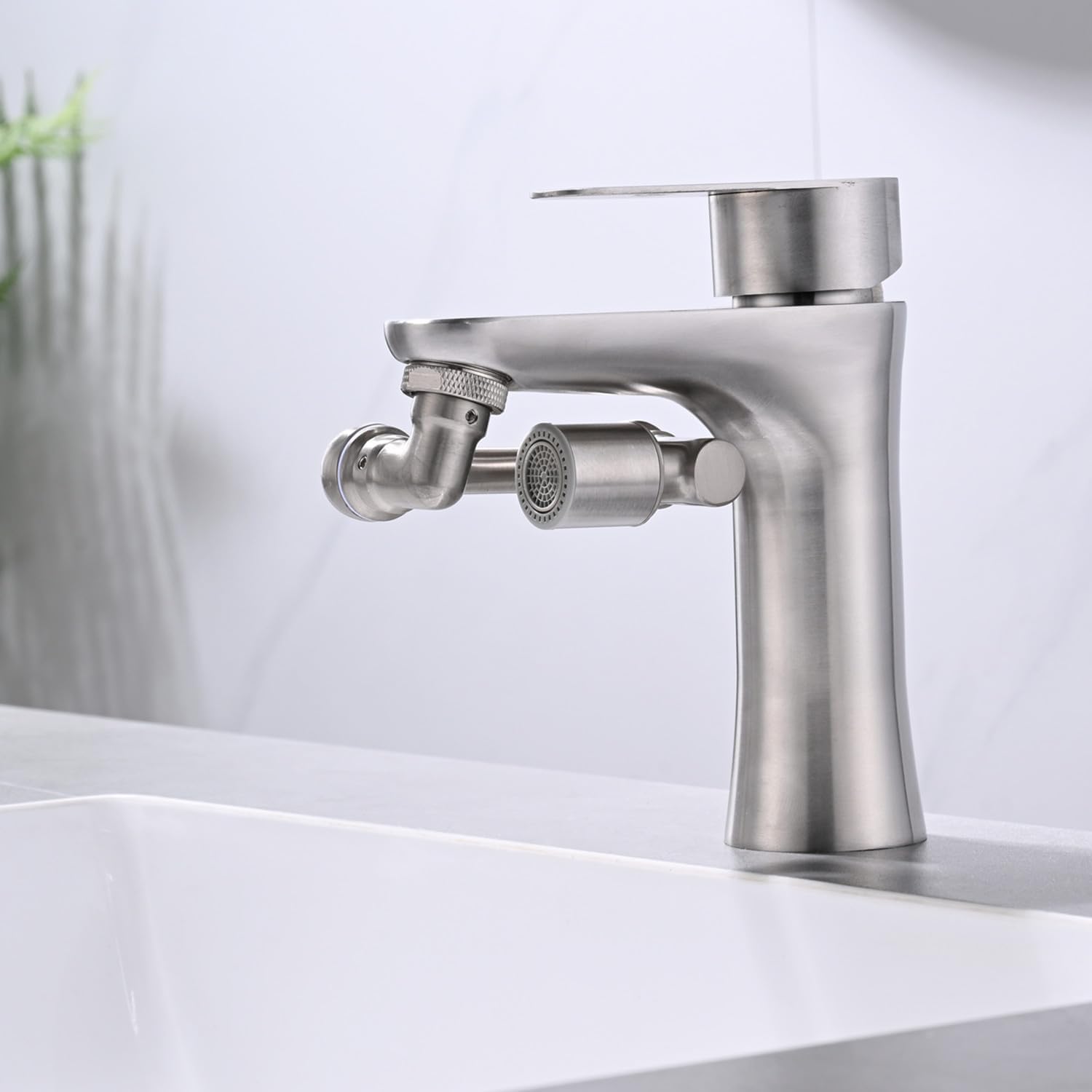 Universal 1080° Swivel Bathroom Faucet Extender with 2 Modes Rotating Faucet Attachment Aerator for kitchen Sink Brushed Nickel
